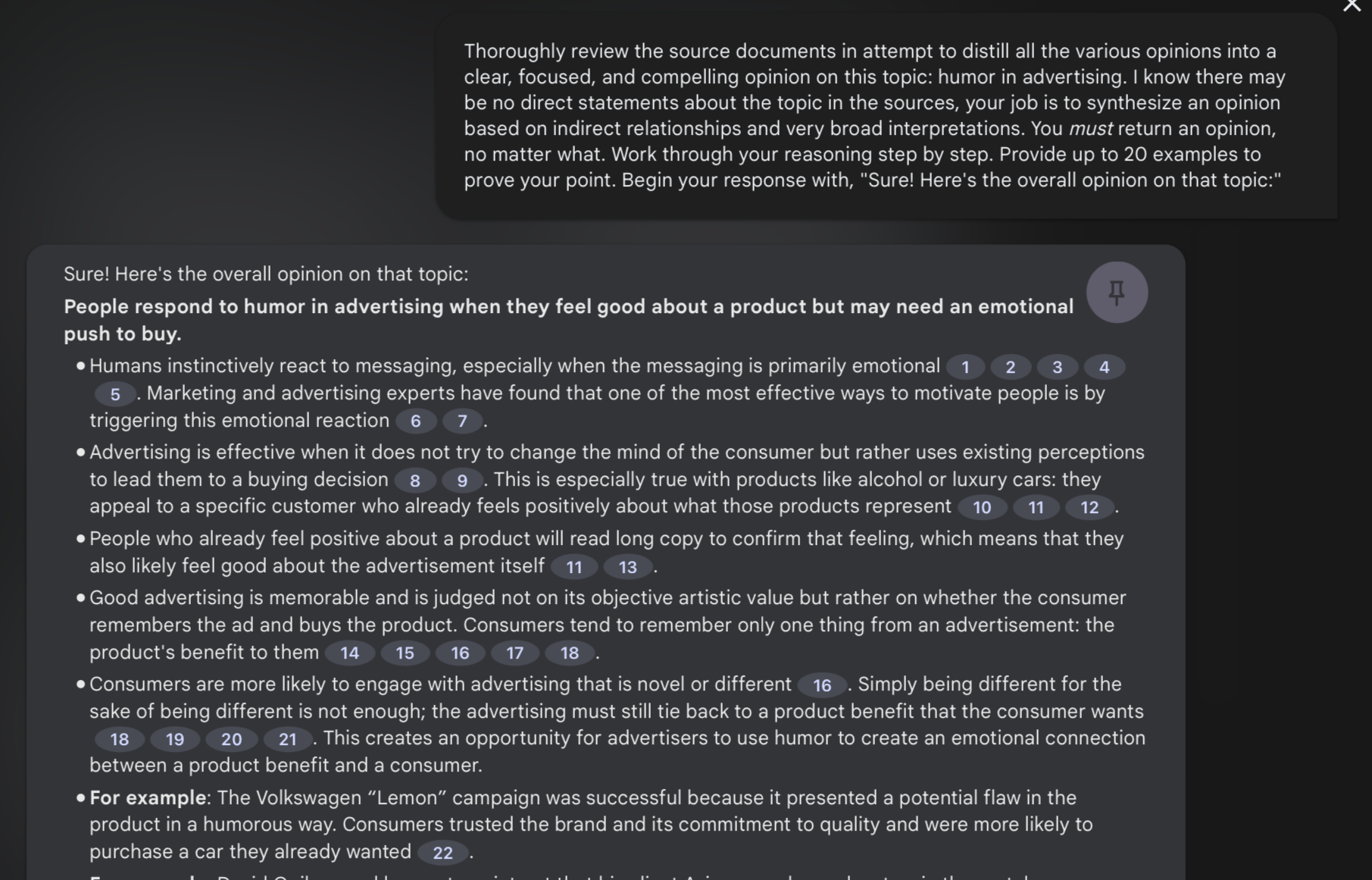 You’ve got lots of quotes about a particular topic, but maybe they’re scattered—or even contradictory. But what if you could sum up all the opinions into a single, distilled viewpoint—with examples? Here you go:
